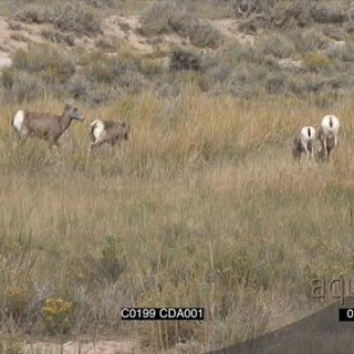 A herd of Bighorn sheep walking, standing and grazing GENERAL BEHAVIOUR