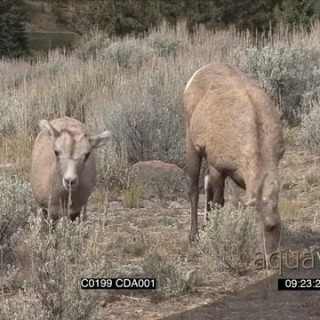 A pair of Bighorn Sheeps standing and grazing GENERAL BEHAVIOUR