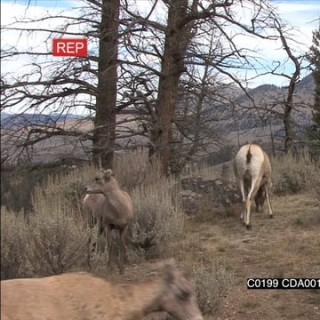 A herd of Bighorn sheep's walking, standing and grazing WS