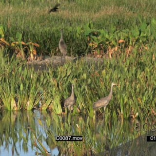 A flock of Sandhill crane walking and standing GENERAL BEHAVIOUR
