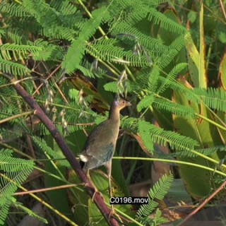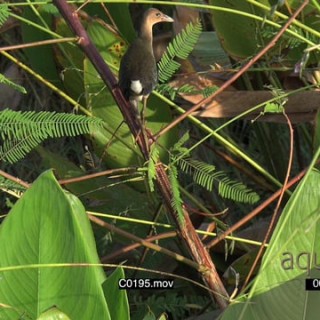 Purple gallinule young standing on a plant and looking around GENERAL BEHAVIOUR GREEN