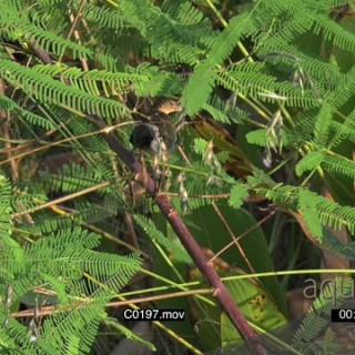 Purple gallinule young standing on a plant and looking around then flies off HA