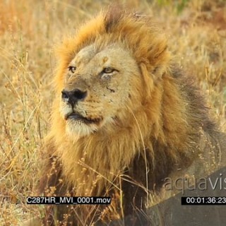 Lion male laying down and sniffing around MCU