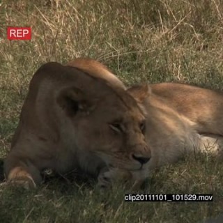 Select options DownloadAfrican Lioness resting on grass moving and tail-slapping MLS HAND