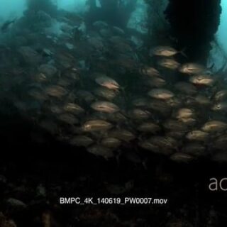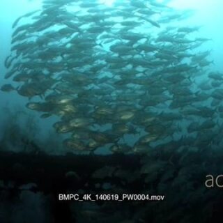 A large school of Big eye Trevally, Caranx sexfasciatus at the Iron Maru wreck