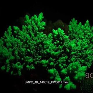 A Staghorn Coral, Acropora spp, sporing at night time. MS.