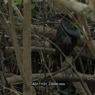 Rarely seen Agami Heron (Agamia agami) perched between twigs