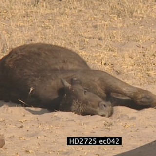 Injured Cape buffalo calf laying down MS