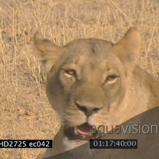 Female African lion pride sitting biting injured Cape buffalo calf MCU MS MLS ZO