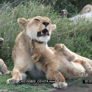 African Lioness laying down on bushveld with cubs moving and showing affection LWS ZI MLS HAND