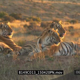 A Bengal tigress with her cubs in GOLDEN LIGHT feeding on carcass