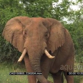 African Elephant standing on bushveld Moving looking at camera LWS ZI MCU HAND