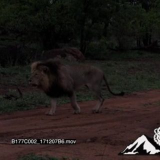 A Male Lion shakes head Roars and Groom then walks into the bush GENERAL BEHAVIOUR