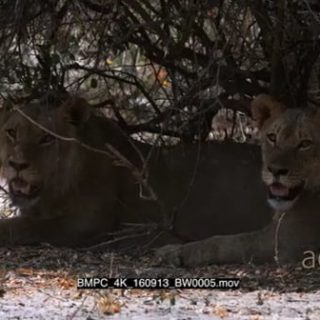 Male lion and lioness Sitting under a shade of a tree looking into camera