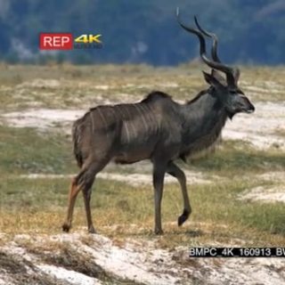 A male greater kudu with their majestic horns Standing Alert Looking around and walks on the plains