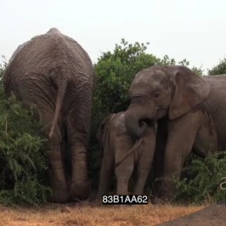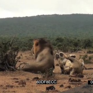 Elephant calf defending itself from a sub adult lion trying to kill it SHAKY