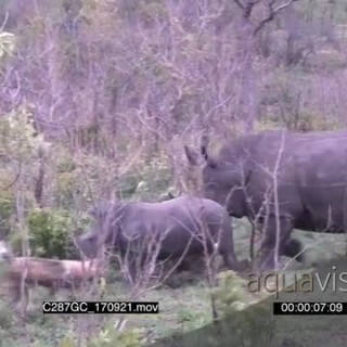 Wild Dogs looking to take a baby rhino down but the mother protects it AmCam