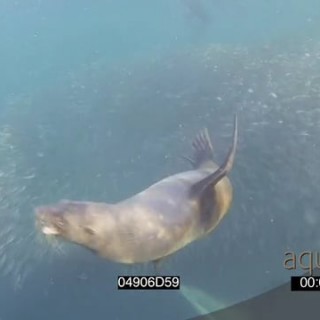 Select options DownloadCommon Dolphins Cape Fur Seals going through Sardine baitball feeding Seal near camera with sardine catch in mouth UNDERWATER HANDHELD