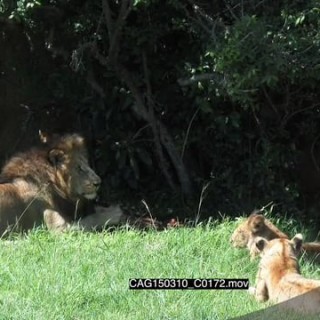 African Lion with bloody face laying down on grass and rubbing face HA MLS HAND