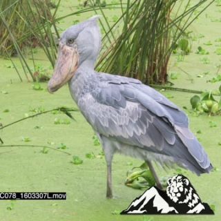 Shoebill bird in a swamp fishing PROFILE