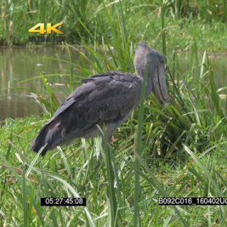 Shoebill bird standing in a swamp fishing MS PROFILE