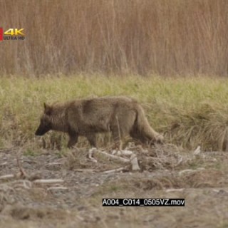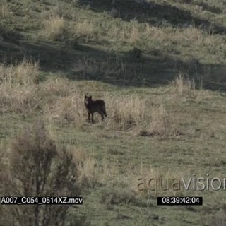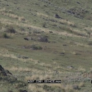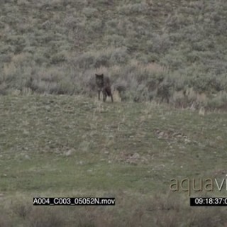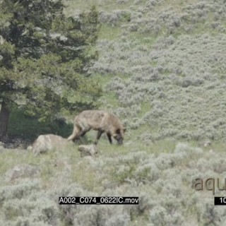 A pair of gray wolves walking around on the hill GENERAL BEHAVIOR