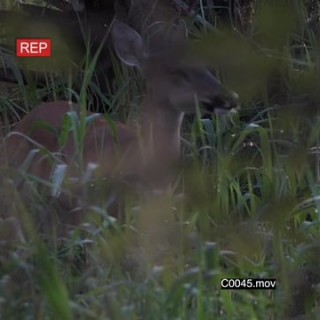 Whitetail Deer walking around in tall grassland and grazing HA TD