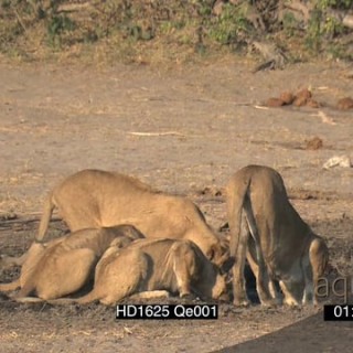 African Lion pride walking towards past camera to waterhole drinking