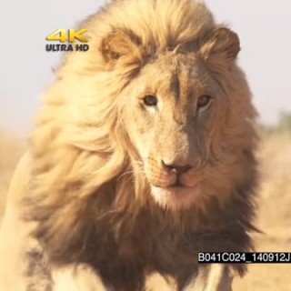 African Male lion running towards camera SLOWMO