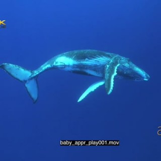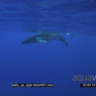 Baby Humpback whale calf surface and dive down into deep UW WS