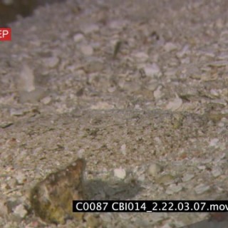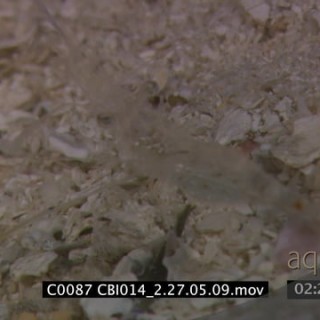 Shrimp walks on seabed, close to Lachner's Tonguesole camouflaged in sand FF; WS