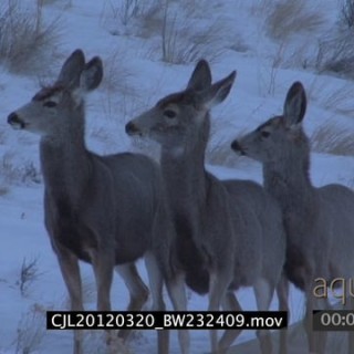Juvenile Elk Antelopes standing and looking around on snowy prairie LS ZI MLS WP