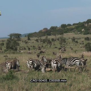 Zebra and Blue Wildebeest herds standing moving and grazing on the Savannah XWS