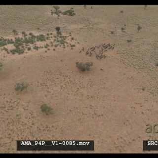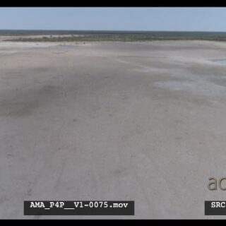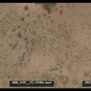 Aerial Drone Wildebeest walking over salt-pan