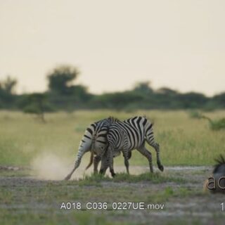 Blue Wildebeest and Plain Zebra herd walking, fighting, looking around, standing and feeding on grass.