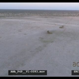 Aerial Drone African lioness in the distant walking over bushveld salt-pan Wildebeest herd and Springboks general behaviour