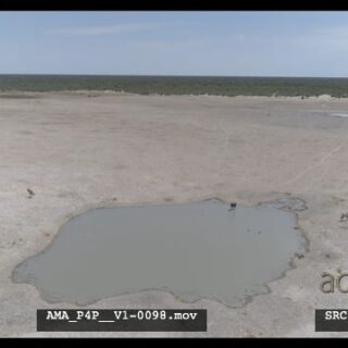 Aerial Drone Wildebeests Gemsbok at waterhole