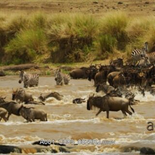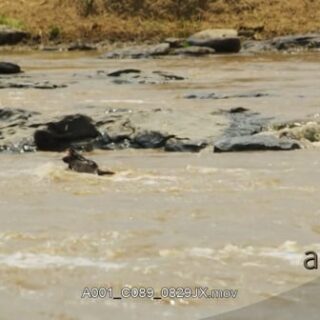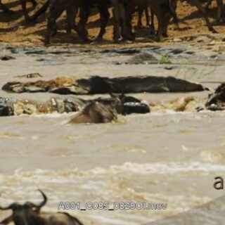 Blue Wildebeest attacked and killed by a crocodile while crossing the river.