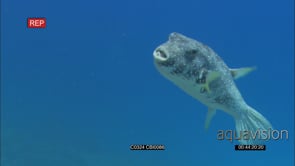 Porcupinefish at cleaning station mouth wide open allowing Bluestreak Cleaner Wrasse to clean inside mouth