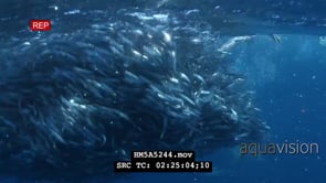Select options DownloadSardine ball swimming underwater in ocean with Cape Gannets fishing and school of Blacktip Sharks attacking it.