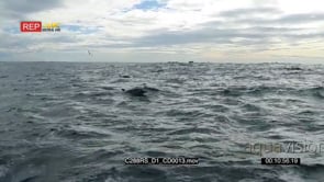 A bait ball of common dolphins in action SHAKY AmCam OVERCAST TOPSIDE