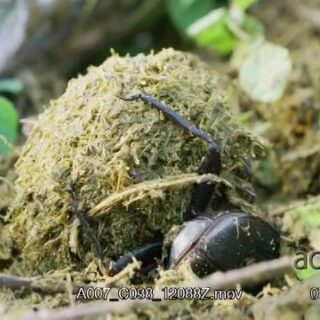 Dung beetle navigating and rolling dung SCENIC