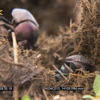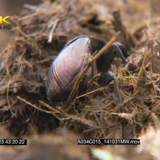 Dung beetles mating in dung, creating dung balls CU FOCUS PULL PAN ZOOM SLOW