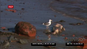 Seagull feeding on dead elephant seal pup on beach WS; ZO; LWS