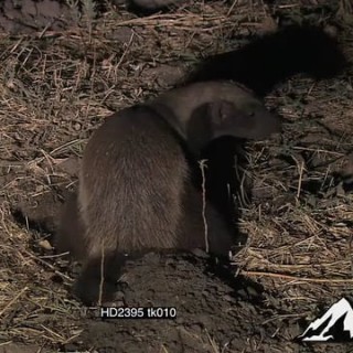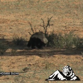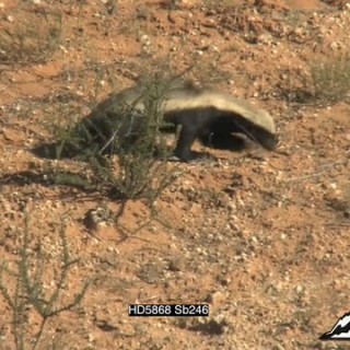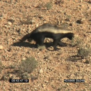 Honey Badger walking around, scavenging and digging for grubs. ZO to zebra walking GENERAL BEHAVIOUR