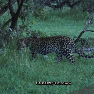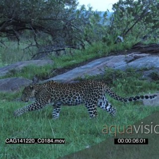 Leopard walking on bushveld marking LWS PAN