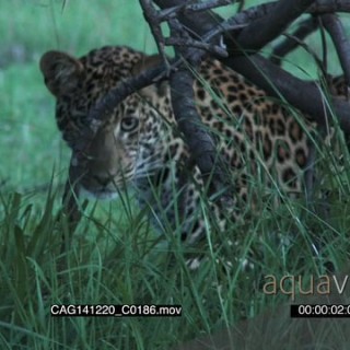 Leopard walking and stalking on bushveld LS PAN HAND