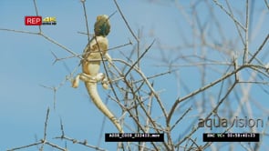 Ground agama in tree CU Zoom Out