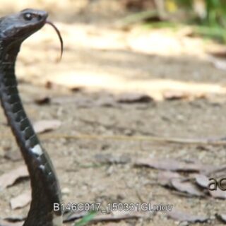 Rinkhals snake defensive striking behaviour and flicking tongue.
