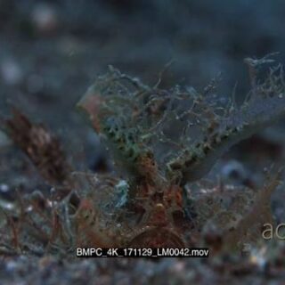Tracking shot at night of a scorpionfish, scorpaenopsis hopping along the sea bed away from the camera